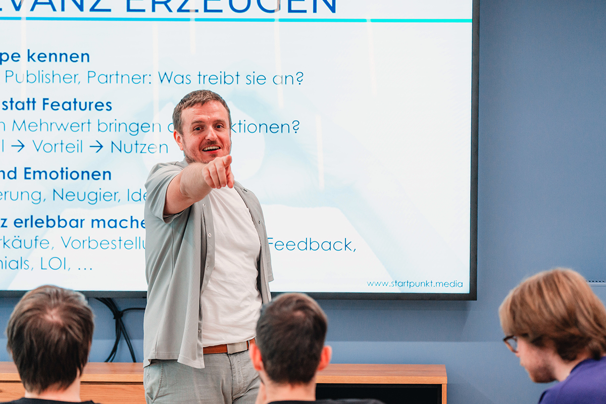 Gründer, die ihre Idee in die Welt tragen und Investoren wie auch Partner fachlich und emotional überzeugen wollen.